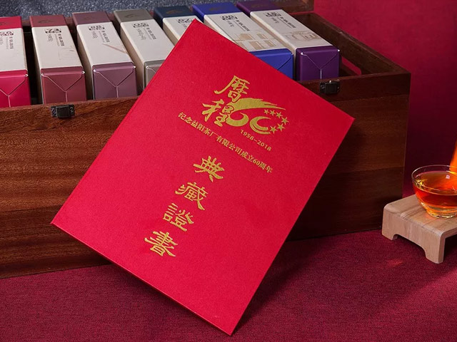 【歷程】是為紀念益陽(yáng)茶廠(chǎng)60周年廠(chǎng)慶而生,并特由陳先敬先生等建廠(chǎng)元勛代表、公司董事長(cháng)彭雄根先生、總經(jīng)理陳小春先生和國家非遺茯茶制作技藝代表性傳承人劉杏益大師等親筆簽名推薦,意義深遠,彌足珍貴。每套都標有獨立典藏編號,且全球限量一萬(wàn)套,乃傳世佳作、典藏臻品。