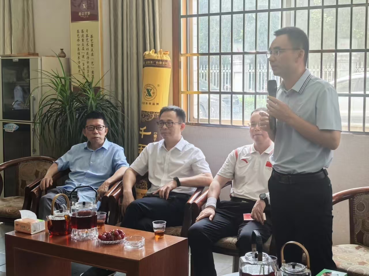 6月5日,西藏自治區民宗委黨組成員、副主任任顯東率西藏自治區“高原紅石榴”少數民族代表團,蒞臨益陽(yáng)茶廠(chǎng)有限公司調研考察。湖南省民宗委民族團結促進(jìn)處二級調研員丁亞波、益陽(yáng)市委統戰部副部長(cháng)溫鈺輝等陪同。益陽(yáng)茶廠(chǎng)有限公司總經(jīng)理余智勇,黨委書(shū)記、常務(wù)副總經(jīng)理徐迪軍,副總經(jīng)理姚永軍,總經(jīng)理助理李世亮、袁緒斌等高管團隊熱情接待了遠道而來(lái)的客人。